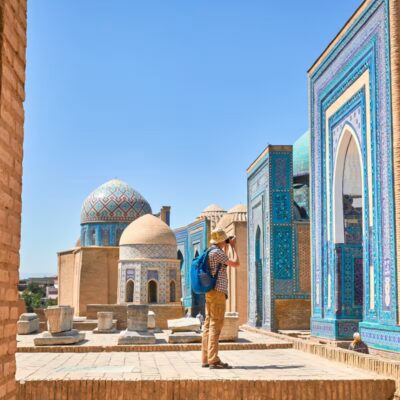 - Samarkand: Registan Square, Bibi-Khanum Mosque, Gur-Emir Mausoleum, Shah-i-Zinda necropolis, and the ancient ruins of Afrasiyab
