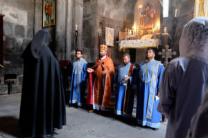 I loved the fact that the Nekresi Monastery stop was spontaneously included on Monday 30th June. To reach what seemed like a deserted monastery after negotiating a steep track up the hillside and there to find a fully robed priest and his deacon taking Divine Liturgy with a congregation of two novices was for me the highlight of an infinitely memorable trip. Likewise, to experience the haunting Aghdgomasa shensa chanted by the group in the St. John the Baptist cave church at Davit Garegi. It lives with me.